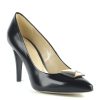 Gyönyörű magas sarkú Anis alkalmi cipő kb 9 cm magas sarokkal, elején elegáns fém díszítéssel. Klasszikus bőr cipő bőr béléssel.