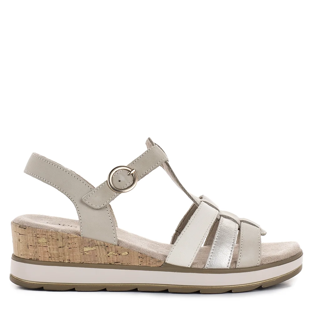 Caprice telitalpú női bőr szandál, bézs