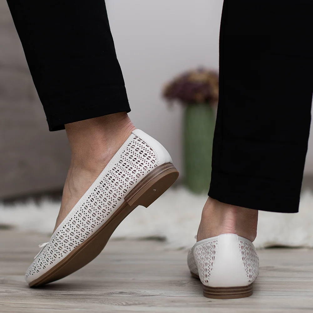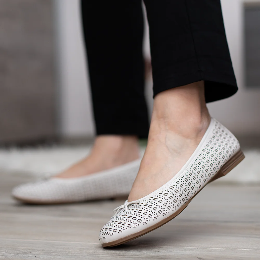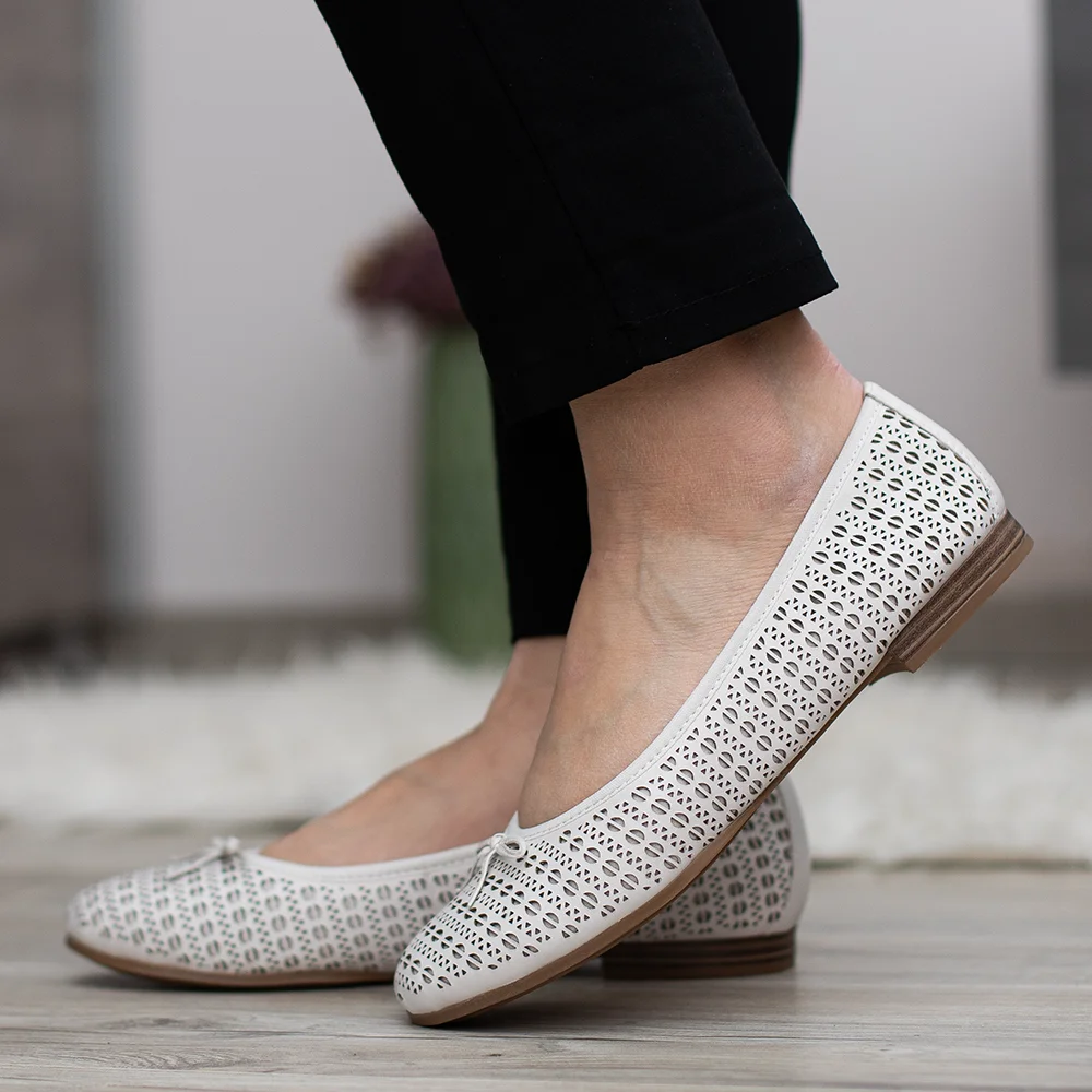 Tamaris balerina cipő lyukacsos bőr felsőrésszel