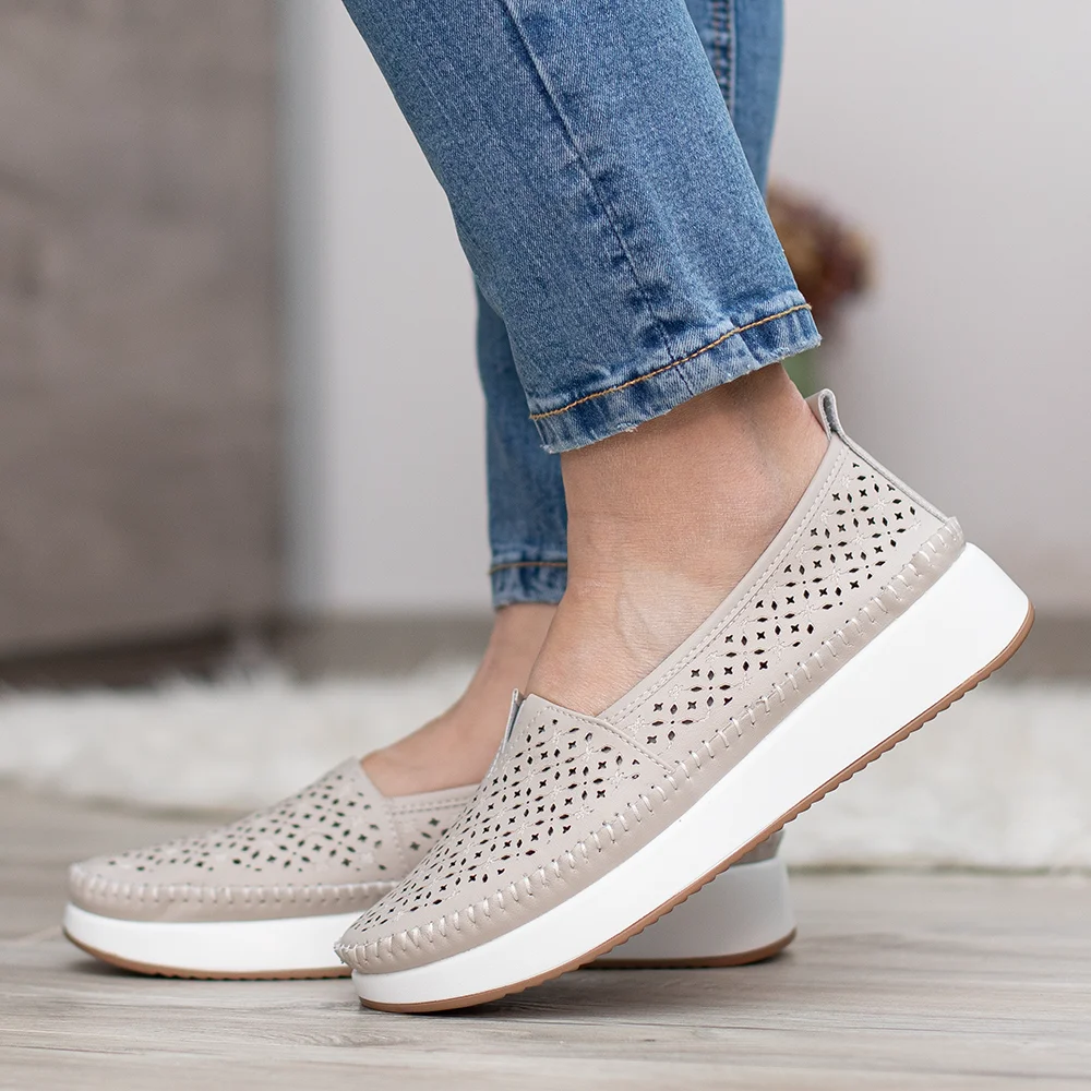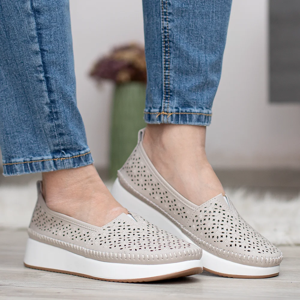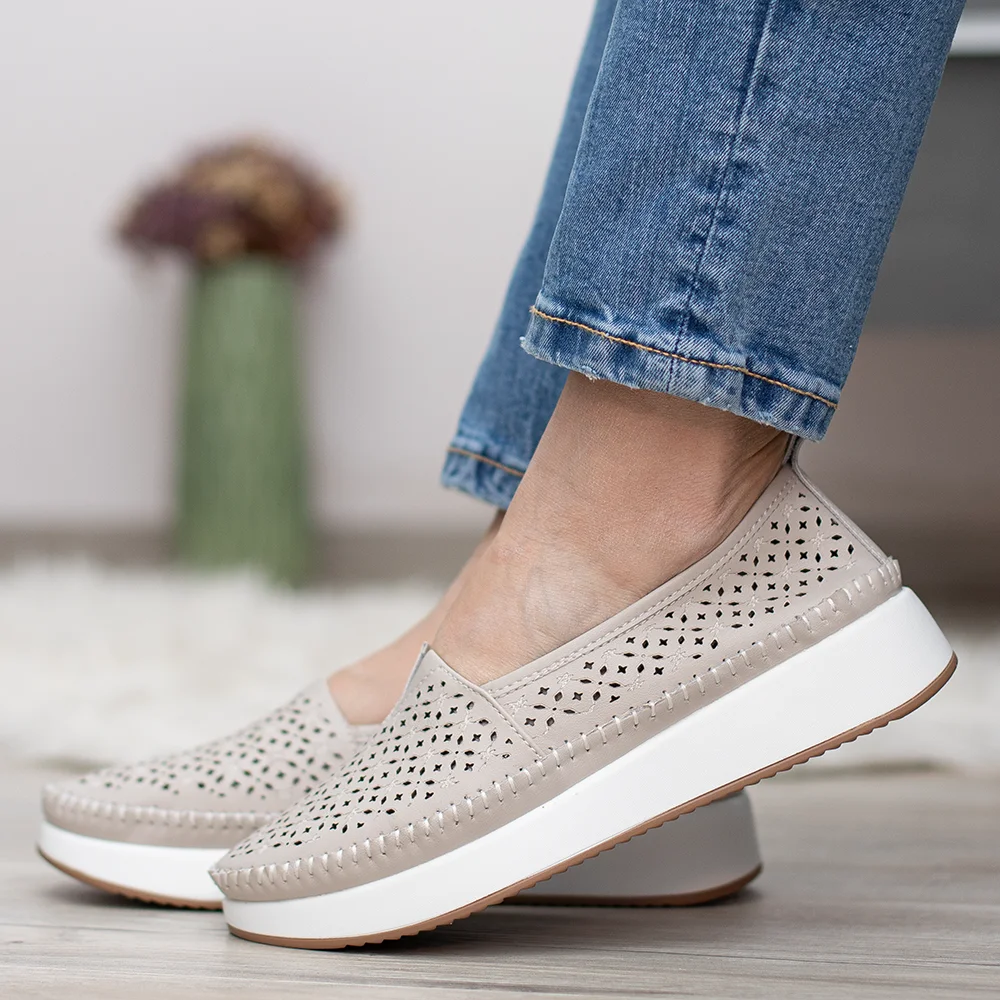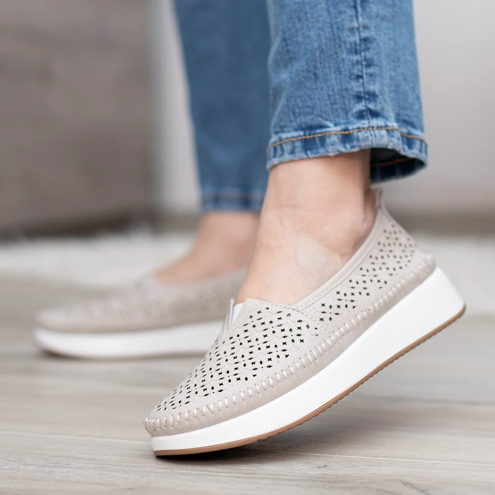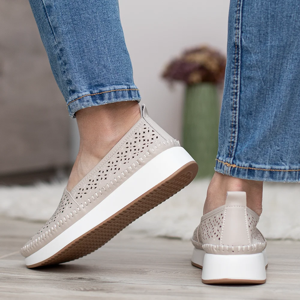 Filippo bézs lyukacsos női bőr cipő