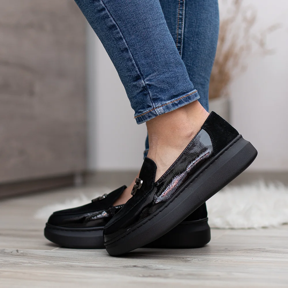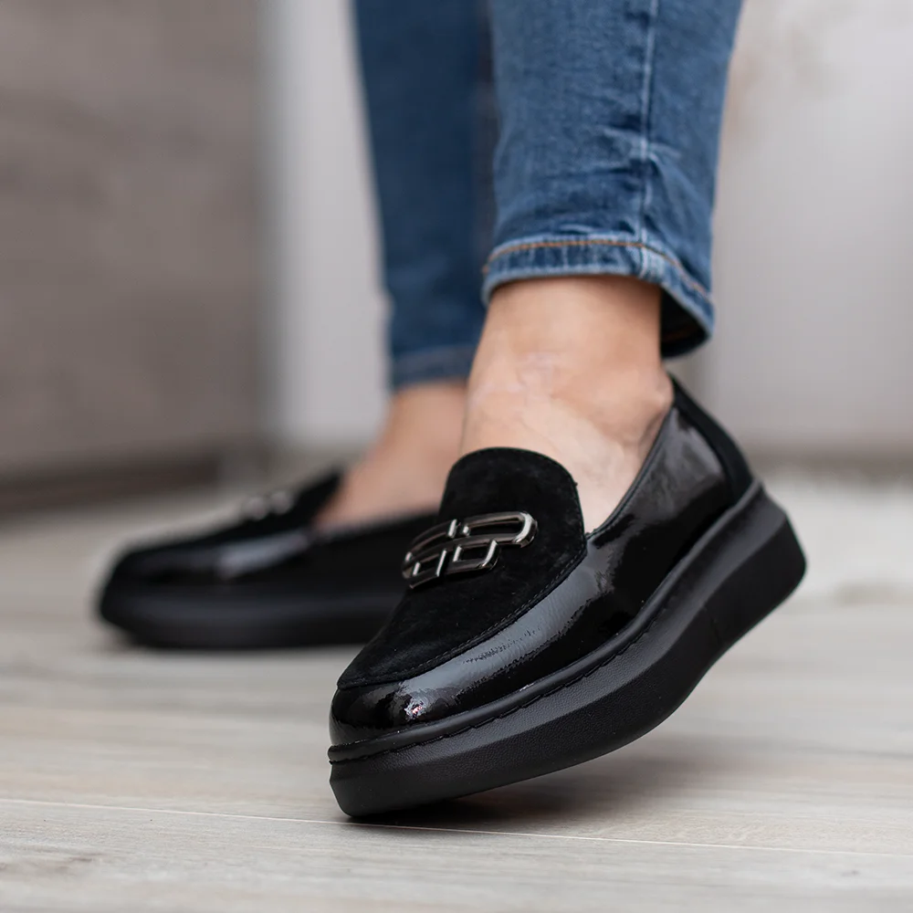 Filippo fekete lakk + velúr bőr bebújós női cipő