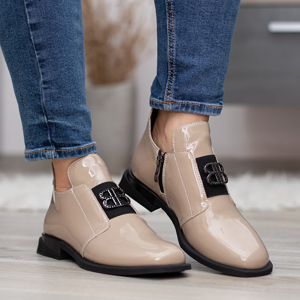 Filippo fekete lakk + velúr bőr bebújós női cipő