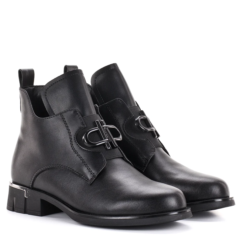 Filippo fekete bőr bokacsizma lapos talppal