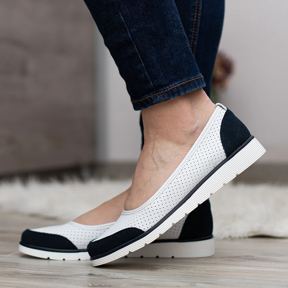 Filippo lapos női bőr cipő kék-fehér színben