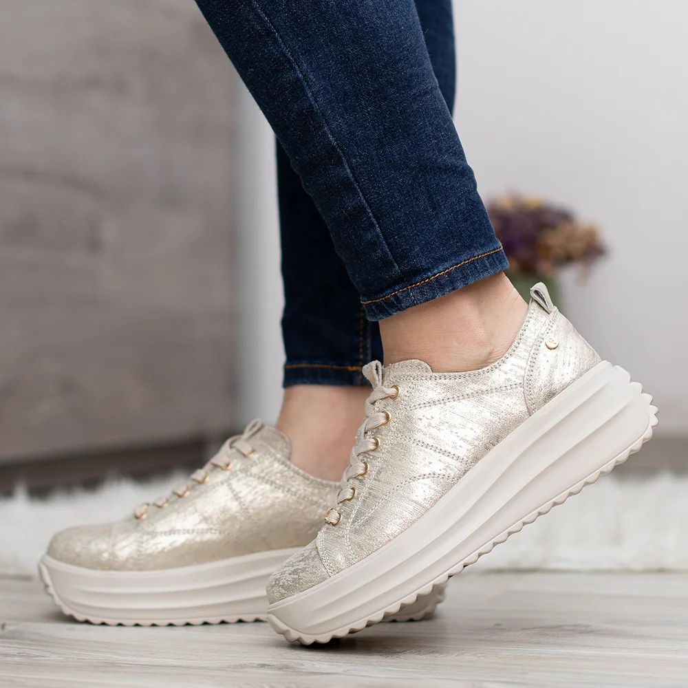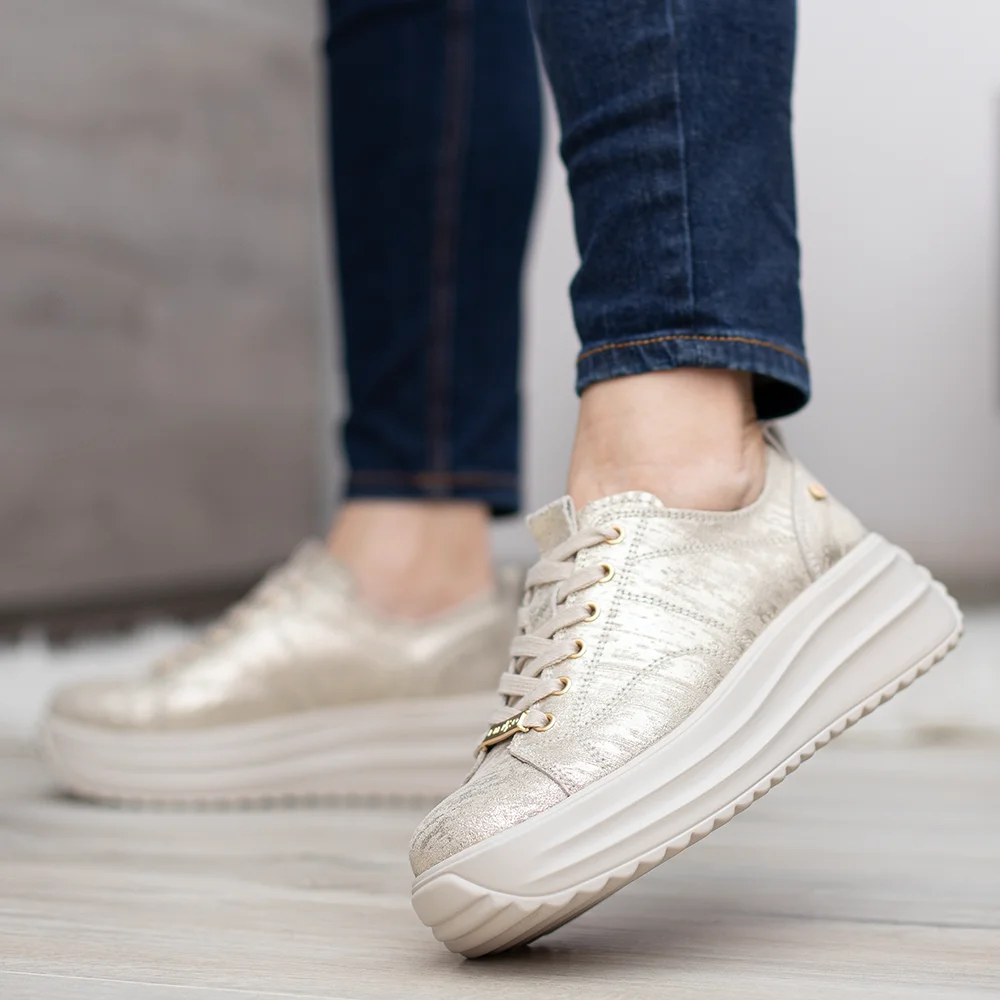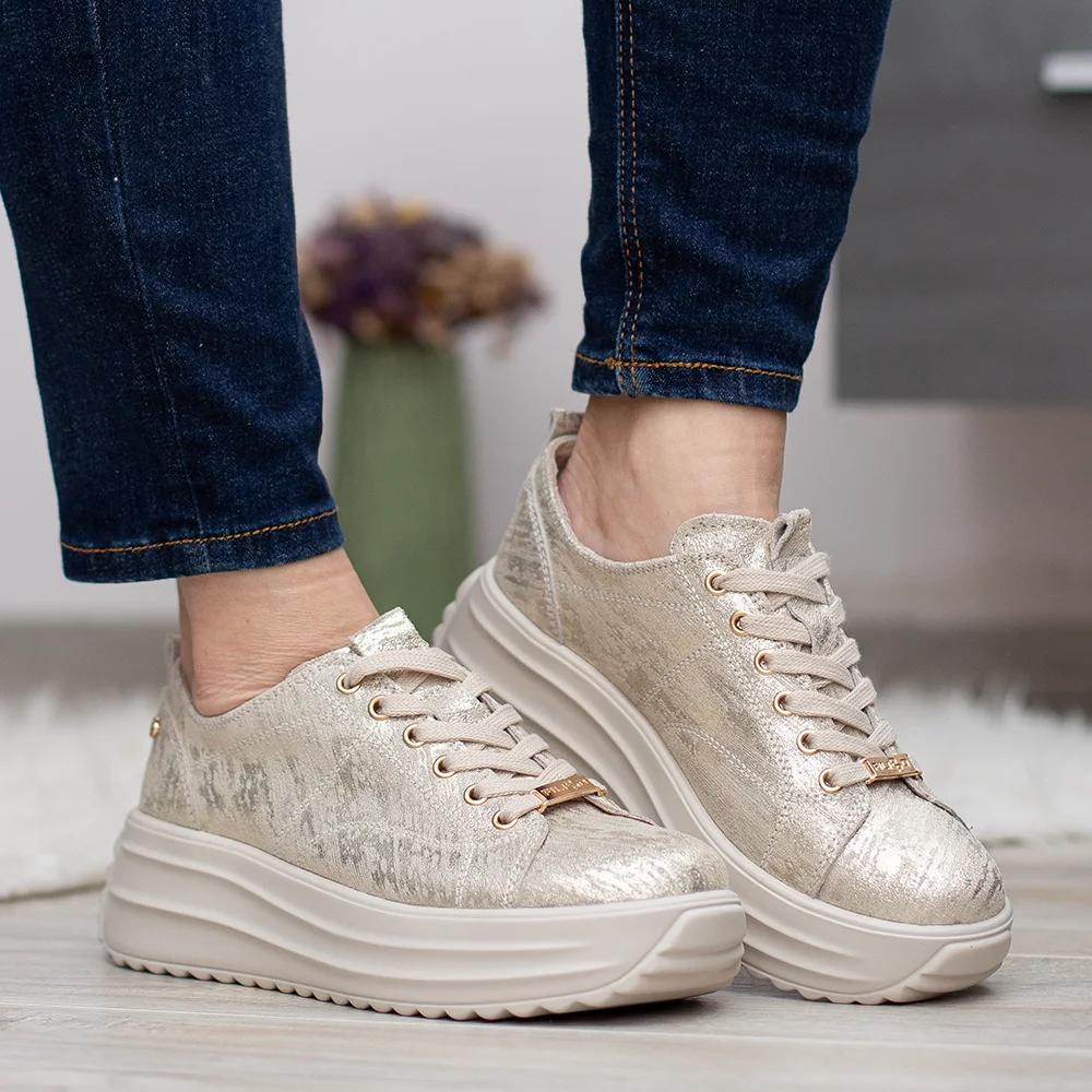 Filippo sportos női bőr cipő arany színben