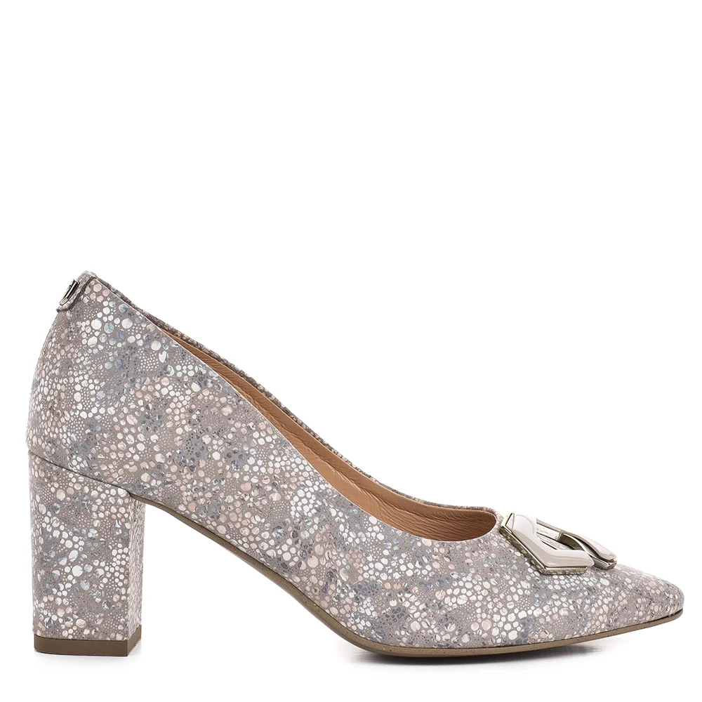 Pulso bézs gyöngyház színű tömb sarkú elegáns női szandálcipő