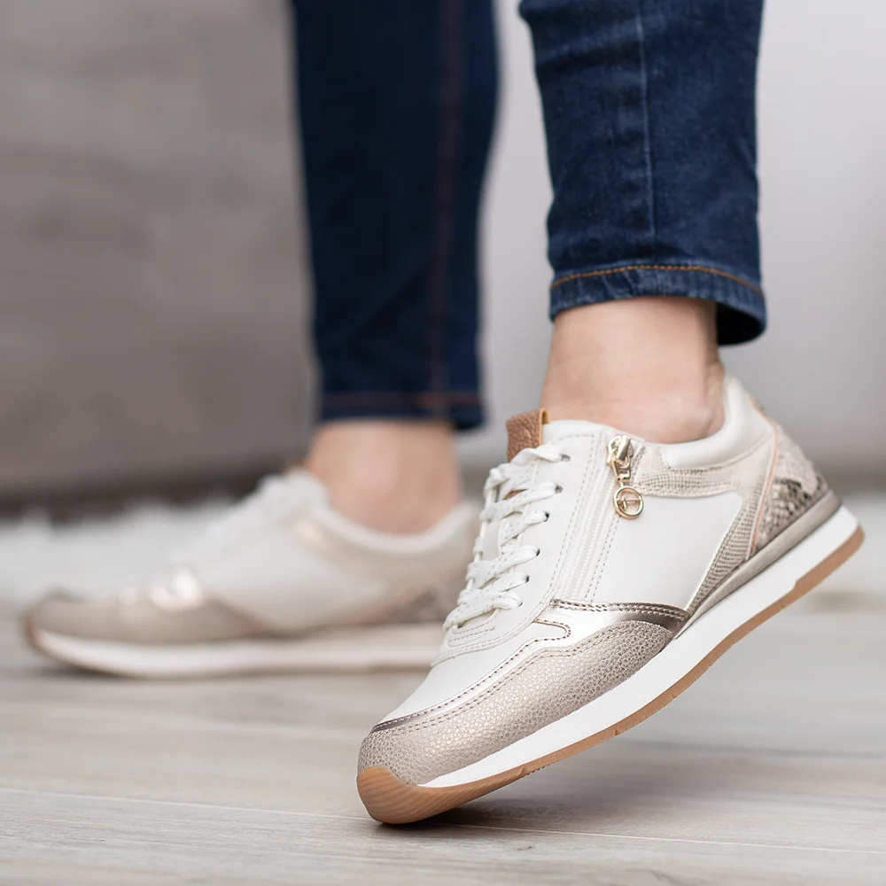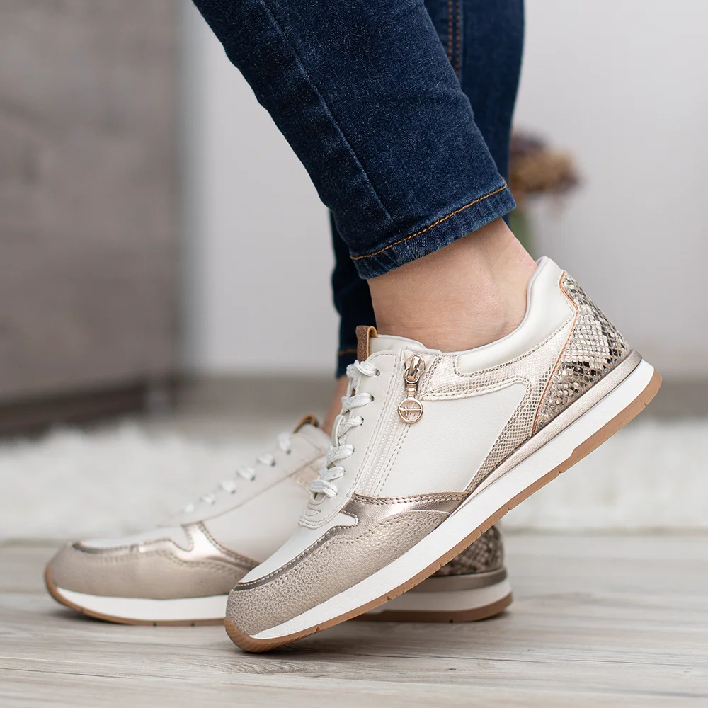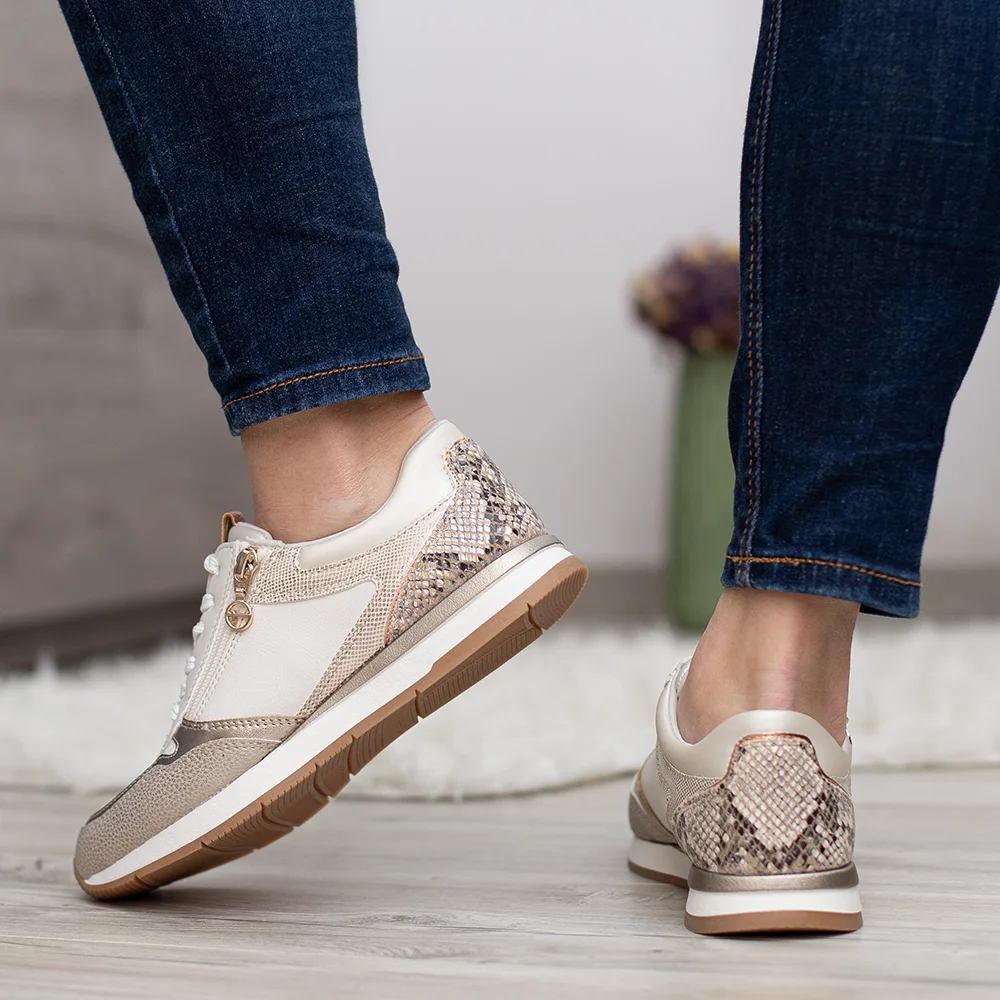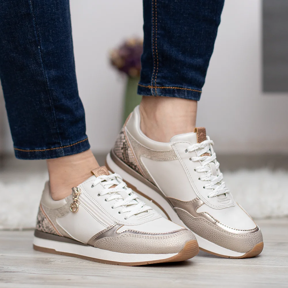 Filippo sportos női fűzős bőr cipő fehér-bézs színben
