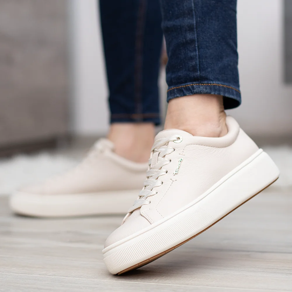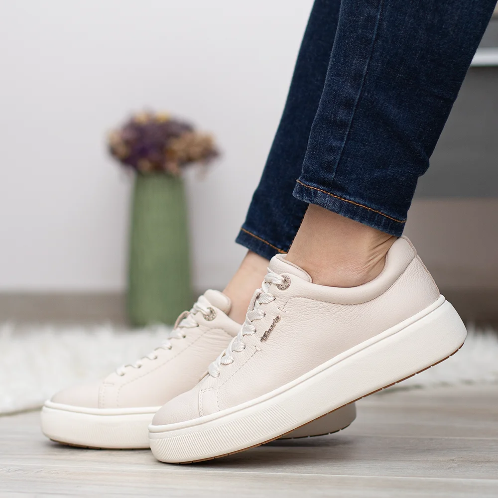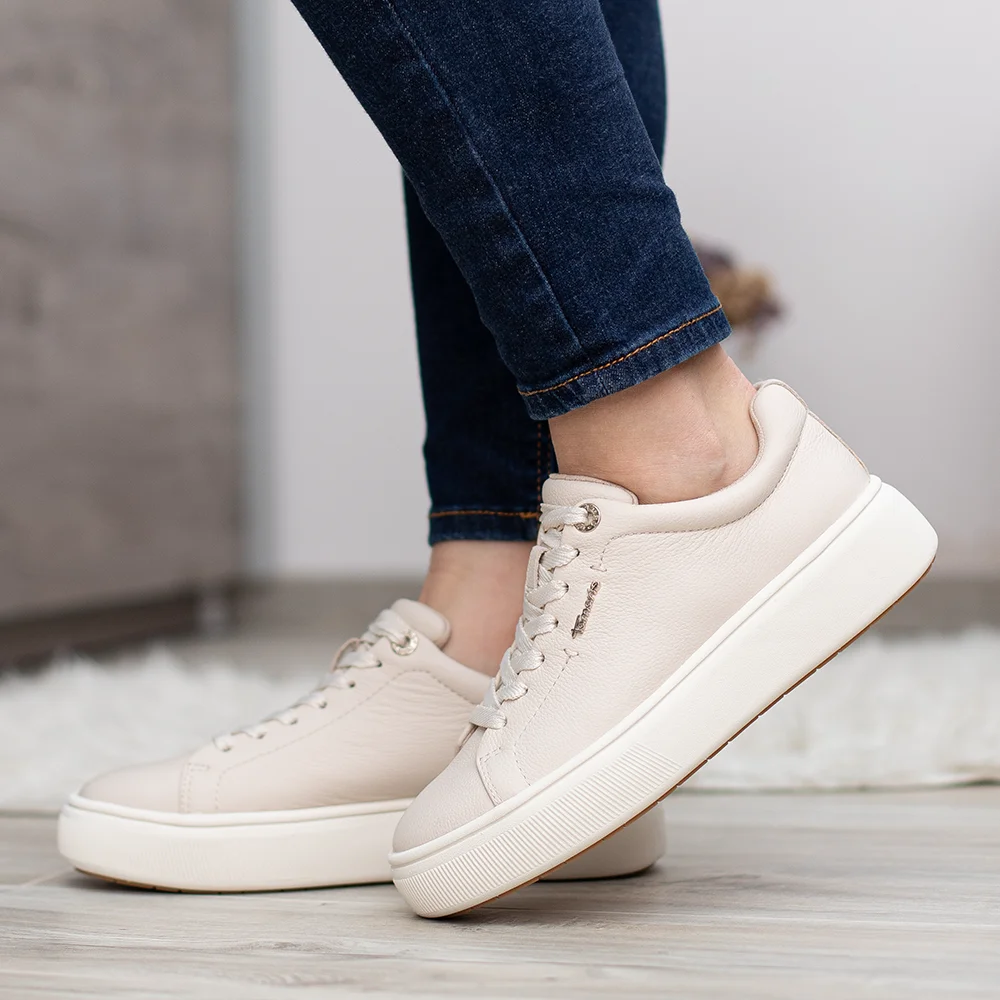 Tamaris sportos női bőr cipő bézs színben